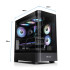 Das auffällige Design kombiniert eine gekrümmte Front aus 4 mm gehärtetem Glas mit einem seitlichen Tempered-Glass-Panel. Diese Konstruktion rückt die verbauten Komponenten in den Vordergrund und erlaubt eine ungestörte Sicht auf Kühllösungen, RGB-Elemente und die Hardwarekonfiguration. Die Glasflächen sind passgenau gefertigt und sorgen für eine glatte, moderne Gehäuseoptik, ohne sichtbare Unterbrechungen.