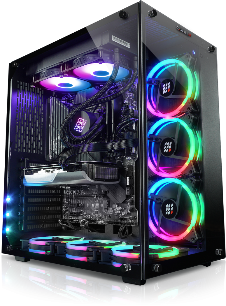 Der Panorama Gamer-PC ist nicht nur ein optischer Blickfang - dank der 240mm großen Wasserkühlung und weiteren 6 eingebauten ARGB-Lüfter wird eine perfekte Kühlung realisiert. Das optische Highlight strahlt durch hochwertige Glasscheiben in atemberaubenden Farbeinstellungen.