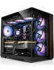 Der Panorama Gamer-PC ist nicht nur ein optischer Blickfang, dank der 6 eingebauten Zusatzlüfter wird eine perfekte Kühlung realisiert. Das optische Highlight strahlt durch hochwertige Glasscheiben (kratzfest) in jeder gewünschten Farbeinstellung. Eine extreme Rechenleistung zeichnet diesen Power PC aus. Geschaffen ist dieser für höchste Ansprüche und bewältigt alle gängigen Bereiche der PC Welt, von Multimedia (Bild- und Videobearbeitung) über Internet (Live-Chat, Video-Streaming) bis Büro- und Schule (Text, Tabellen Präsentationen).