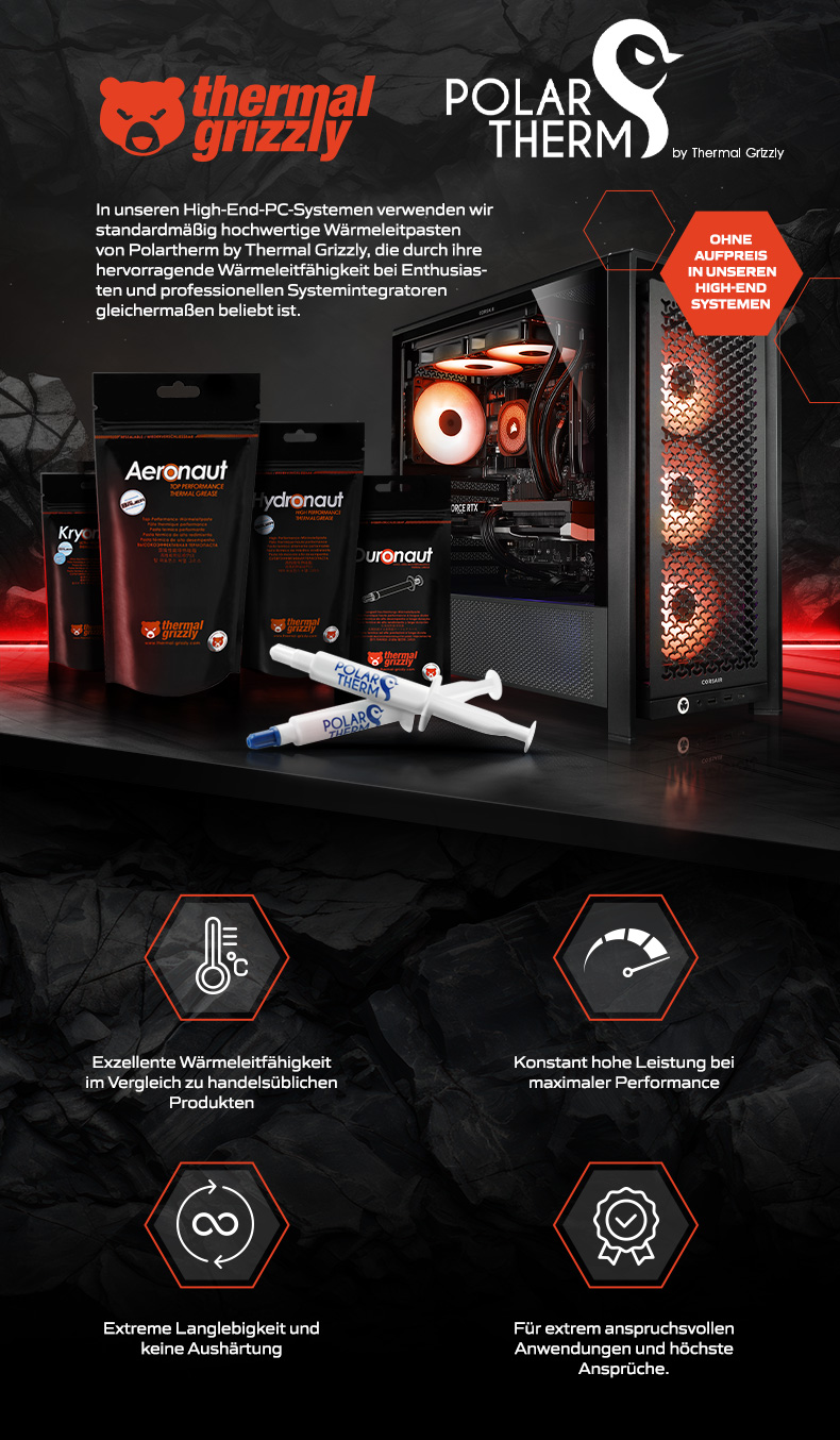 [Extreme Ryzen VII] Basis: AMD Ryzen Sockel: AM5 Die Systeme bieten die derzeit bestmöglichste Zukunftsfähigkeit. Ein PC der über Jahre eine respektakles Leistungsniveau halten wird. Systeme die kaum Wünsche offen lassen. [Qualität] Alle Systeme der Extreme-Reihe sind für äußerste